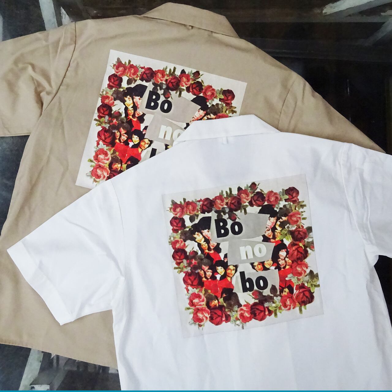 [ SHIRT ] 中原昌也デザイン / bonobo開襟シャツ ( WH / BE )